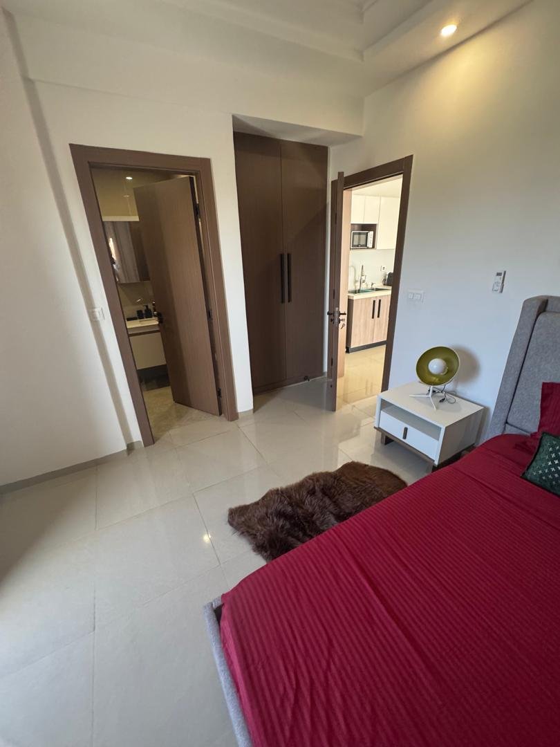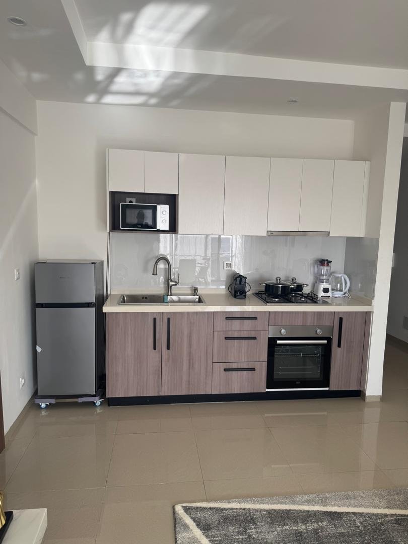 Salon ouvert avec une cuisine équipée, toilettes visiteurs. Pour les commodités nous avons un service de sécurité, salon d’attente, ascenseur parking extérieur.
